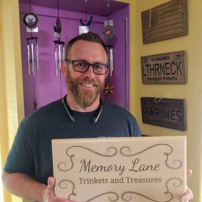 Anthony Hunt was born and raised in San Diego, California. He moved to Glendale, Arizona in 2006. Anthony has a love of the outdoors, animals and working with his hands. He loves to build and create and is always eager to learn a new trade and pick up a new hobby. Anthony credits his dad for his love of creating and passion for working with wood. Anthony skillfully creates custom engraved designs from wood including signs, games and novelties. He takes great pride in working with the grain of the wood and finding new designs to create for his customers. We are thrilled to feature Anthony’s beautiful woodwork at Memory Lane Trinkets and Treasures.