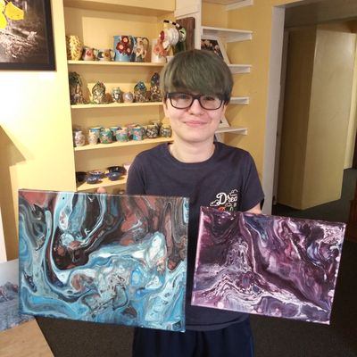 Lydia Algozzini is an Arizona native. She first started painting in 2018 when her parents signed her up for a three-week summer art class. That class quickly ignited her passion for creating acrylic pours and slides and she quickly began mastering the art form. Most of her acrylics are inspired by the ocean or space. Her interests also include drawing and animation and her favorite subjects are wolves and dragons. Lydia signs her work 'Lemon Smoothy'(LS) and is our youngest artist at Memory Lane Trinkets and Treasures. We are thrilled to feature her eclectic and iconic collection of acrylic pours and slides.